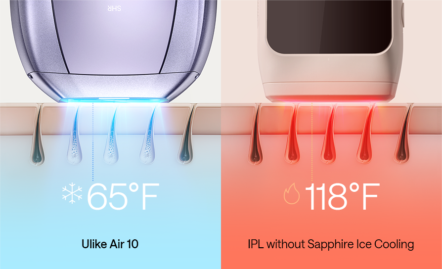 The Air 3, equipped with our signature Sapphire Ice Cooling technology, maintains a comfortable 25°C during treatments, safeguarding your skin from burns while ensuring effective and efficient hair removal.