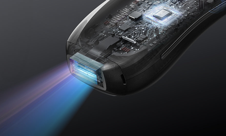Our brand-new skin SkinSensor protects by auto-adapting the intensity of the flashes to your skin tones, optimizing your sessions to blast hair while keeping your skin safe.